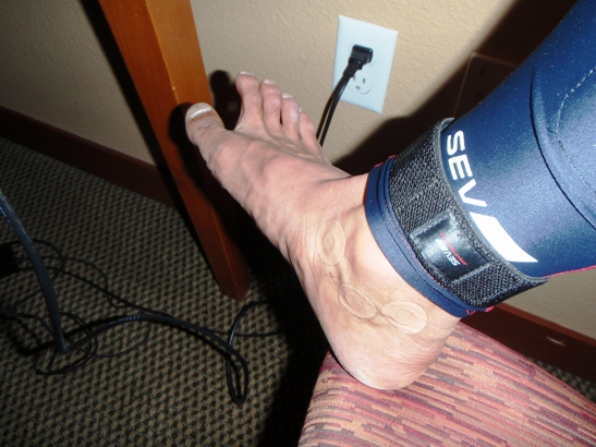 捻挫した足首もSEVパッチにSEVベルト、SEVヒラメにSkin'Sと