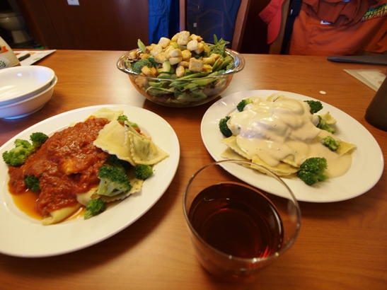 前夜はトルテリーニを2種類のソースで