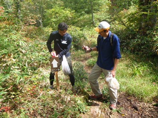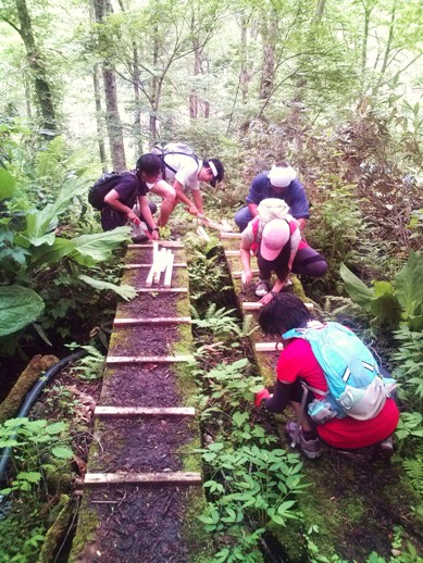 約18キロのトレイルを走る中で途中、トレイルのメンテナンスを行いました。
