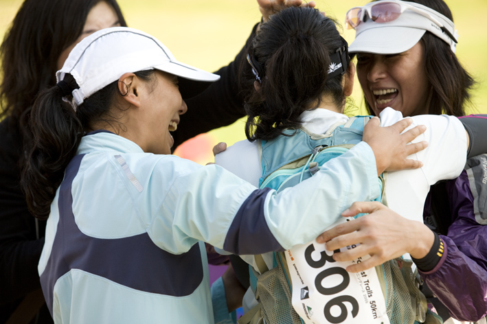 天候は終日曇り、深夜小雨という中、76%という予想を上回る完走率で、100キロという道のりに過酷とされた後半部分を乗り越え、多くのランナーがゴールへ辿り着いてくれました。トップランナーは初めてのコースにも関わらず、終始、果敢に攻めた走りをされ、総合優勝した相馬剛選手は「最高のレース」と評して下さいました。各関門を制限時間ぎりぎりで通過するランナーは、前へ前へと辛いなかでも進み続け、決してあきらめることなく、雨も降りだしていたタイムリミットのわずか数秒前までゴールゲートを笑顔でくぐりぬけてくれました。