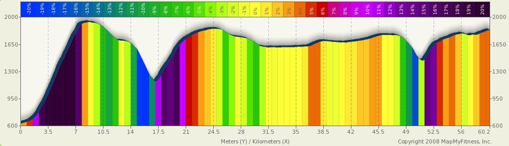 長いロングアップヒルが2つありそれを我慢して越え、後は緩やかなアップダウンというところで痛いミスコース、レースコースの誘導標識がほとんど無かったため、注意して見ていたのにかかわらず、情けない内容でした。