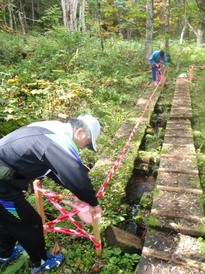 約18キロのトレイルを走る中で途中、トレイルのメンテナンスを行いました。
